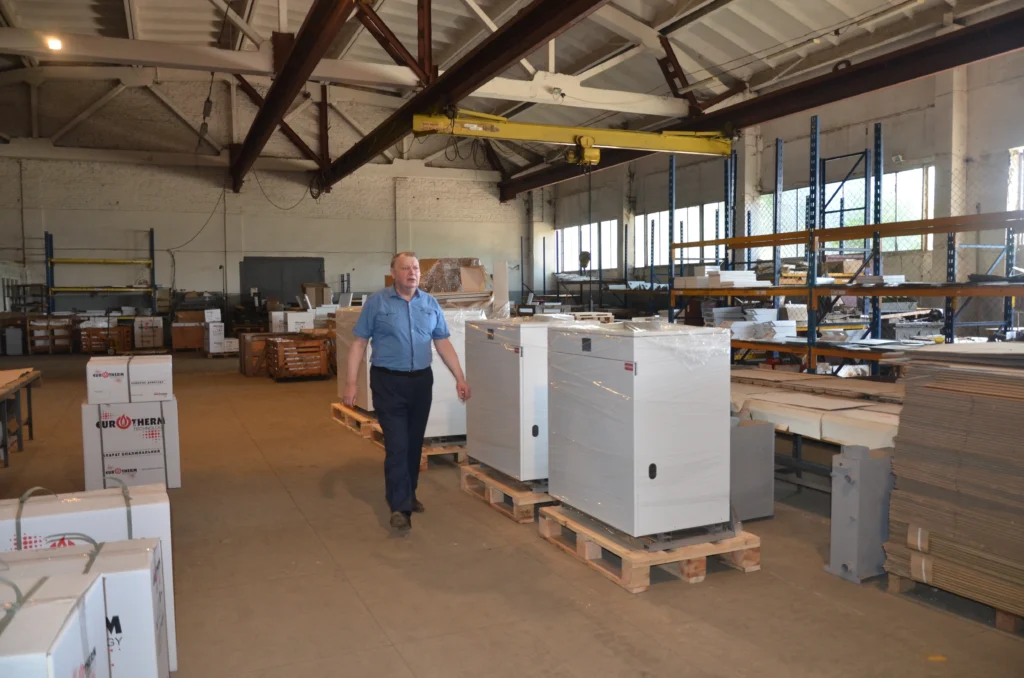 Зараз завод виробляє котли, які працюють на газу та альтернативному паливі. Є обладнання для побутових споживачів, промислові котли для великих будівель, як от лікарні чи школи. Та головний акцент тепер роблять на виготовленні блоково-модульних котелень. Вони здатні обігріти тисячі людей, наприклад, мікрорайон у місті. Таке обладнання стало особливо затребуваним із початком повномасштабної війни, коли ворог нищив ТЕЦ, тепломережі та старі стаціонарні котельні. Через це цілі міста залишилися без тепла. Зрештою на рівні держави нарешті вирішили децентралізувати теплопостачання, а міста одне за одним приймають відповідні цільові програми.
